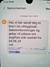 I meldingane står det at ein har mottatt eit brev i ei utleggssak, spesifikt frå namsmannen, og at det hastar å følgje lenka og betale for å unngå gebyr.