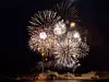 Slik så det ut da rekordfyrverkeriet på Glomset ble skutt opp nyttårsaften. Takket være en god porsjon dugnadsånd og egeninnsats kunne 2-3000 personer nyte rekordfyrverkeriet som ville hatt en markedspris på omlag 300 000 kroner. Takket være sponsormidler fra private og bedrifter kunne Kenneth Hurlen, som selv driver salg av fyrverkeri, gi de frammøtte en spektakulær inngang til det nye året.