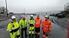 Begge peiker også på maskinførar Peder Skylstad som har hatt jobben på Slinningsodden frå start til mål.