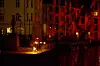 Det var helt fullt i gatene med folk som ønsket å få med seg det spektakulære showet. I år ble det gjort en ny vri. De forgående årene har det vært lys som leker seg på husene med levende musikk til. Slik var det ikke i år.