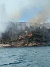 Det er nå slukkeinnsats både på land og fra sjøen.