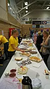 Mykje folk på tribuna også under denne kampen, leia av FIFA-dommar Tom Henning Øvrebø. Også i Stordalshallen var det stappfullt med folk, heile laurdagen. Der var underhaldning frå scena, mange flotte utstillarar, kafe og ikkje minst stort loppemarked.