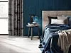 Det er de mykere og mer eksklusive materialene som regjerer på soverommet.