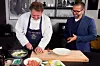 Vi har mat og kultur her i distriktet som turistene ønsker og vi kan være stolte av. Nå må vi bli enda flinkere til å sette dette sammen til opplevelsespakker, sier Jan Sverre Sivertsen. Sammen med Nils Henning Nesje prøver de ut nye varianter av klippfisk.
